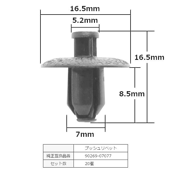 プッシュリベット サイドカバー カウルクリップ チェーンカバー タンク クリップ 純正品番 互換 90269-07077 ヤマハ YAMAHA 20個セット
