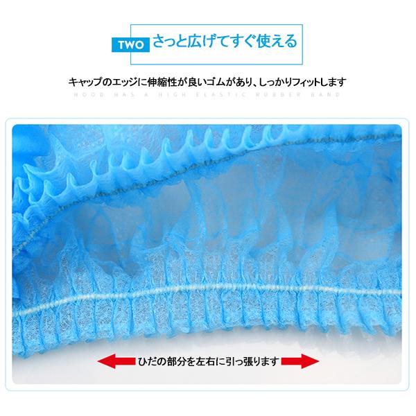 〇毛髪落下防止、混入防止等の衛生管理には欠かせないフードキャップ一体成型で衛生的なディスポ(使い捨て)タイプの帽子です。
