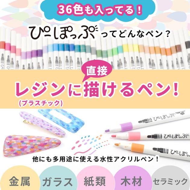 レジンペン カラーペン 36色セット ケース付き ぴーぽっぷ ピーポップ レジン レジンに描ける 色塗り 着色 筆 丸 イラストプラバン アクセサリー マーカーペン アートペン カラフル 子ども キッズ コーテイング レジン 発色 36カラー お絵かき 塗り絵 ピアス イヤリング プレゼント ギフト 誕生日 水性アクリル