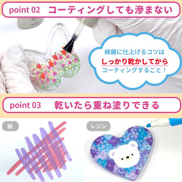 高発色で乾いたら重ね塗りもでき、コーテイングしても滲みません。