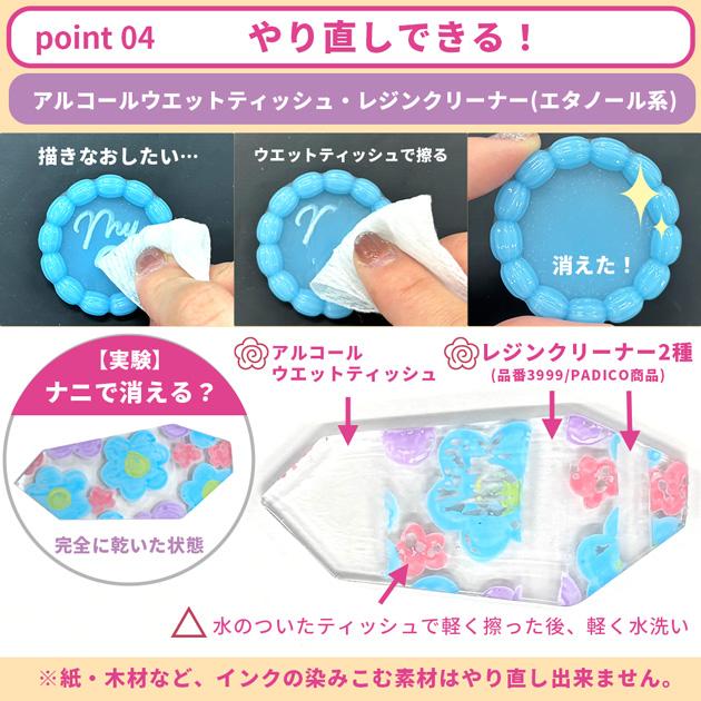 レジンクリーナーやアルコール入ウエットティッシュで拭き取れば何度でも書き直しOK!(※)