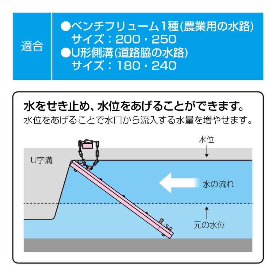 ●U字溝に使用する水深調整板です。●溝のサイズ・水の深さに合わせて調整し、置くだけの簡単施工。●主材に発泡PVCを使用しているので軽く、移動が楽に行えます。【!ご注意!】●実店舗と在庫を共有しているため、ご注文頂きましても商品をご用意できない場合がございます。 その場合は、メールにてご連絡を致します。 ●商品外箱に直接、荷札や伝票を貼り付けての発送となります。