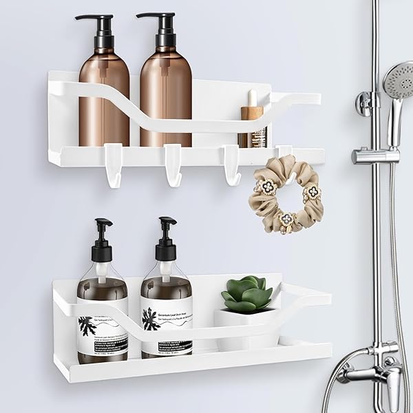 NK Phoenix 浴室 マグネット 収納 お風呂 マグネット ラック 浴室用ラック マグネット 棚 シャワーラック シャンプーラック 洗濯機 冷蔵庫錆びないサイドラック 洗面所 バスルーム キッチン収納 風呂 棚 (ホワイト 二段式 4フック)