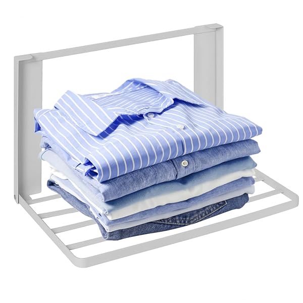 NK Phoenix 洗濯機横マグネット折り畳み棚 マグネット 収納 ランドリーラック 棚 洗濯機 ラック 浴室 お風呂 脱衣所 洗面所 タオル置き バスタオル掛け 省スペース 磁石 折りたたみ 棚 (ホワイト) 約40X25X25