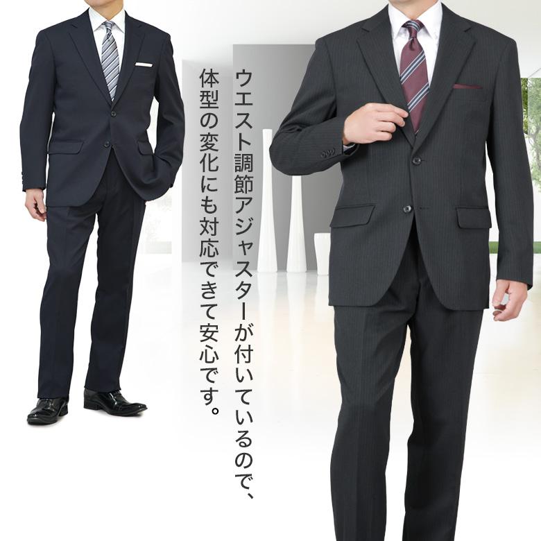 【秋冬春対応】アジャスター付き ウォッシャブルスーツ<BR>なめらかな手触り・シワや虫喰いに強い新素材を使用、繊維技術の進化を実感できるお手頃価格のスーツ。細身のスーツが苦手な方にお薦め、ゆとりのあるサイズ型紙を使用しています。上下ともにご家庭で水洗いでき、いつも清潔に保てます。ウエスト調節アジャスター(±6cm)が付いているので、体型の変化にも対応できて安心です。