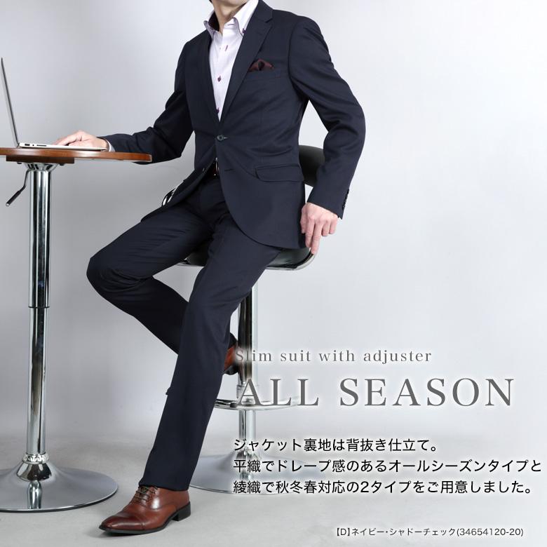 【オールシーズン/秋冬春対応】アジャスター付きスリムスーツ