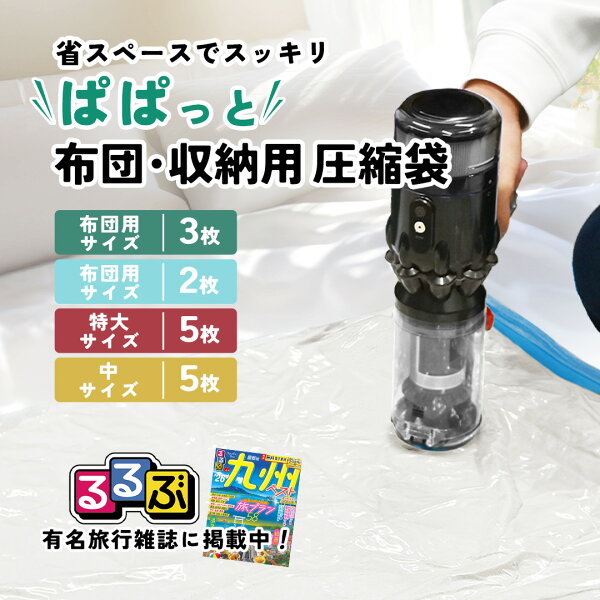 | 説明 | 【待望の布団・収納用 圧縮袋】 ご好評をいただいている旅行用圧縮袋に続き、布団用圧縮袋がラインナップ。衣替えの季節に役立つ便利グッズです。布団圧縮袋や布団収納袋として使用でき、ご自宅のクローゼット悩みを解消します。専用ポンプ付きで掃除機がなくても圧縮!