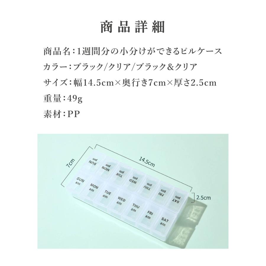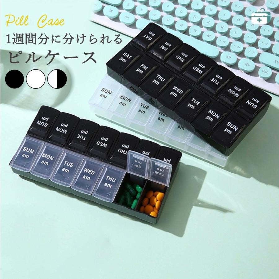 ・特徴:ピルケースとして1週間分入れられる携帯用お薬ケース。午前と午後の2回に分けられる小部屋付きです。1週間に分けることができるケースなので、飲み忘れの防止に役立つ設計になっています。コンパクトでスリムなデザインなので、バッグなどに入れての持ち運びもしやすいデザインになっています。