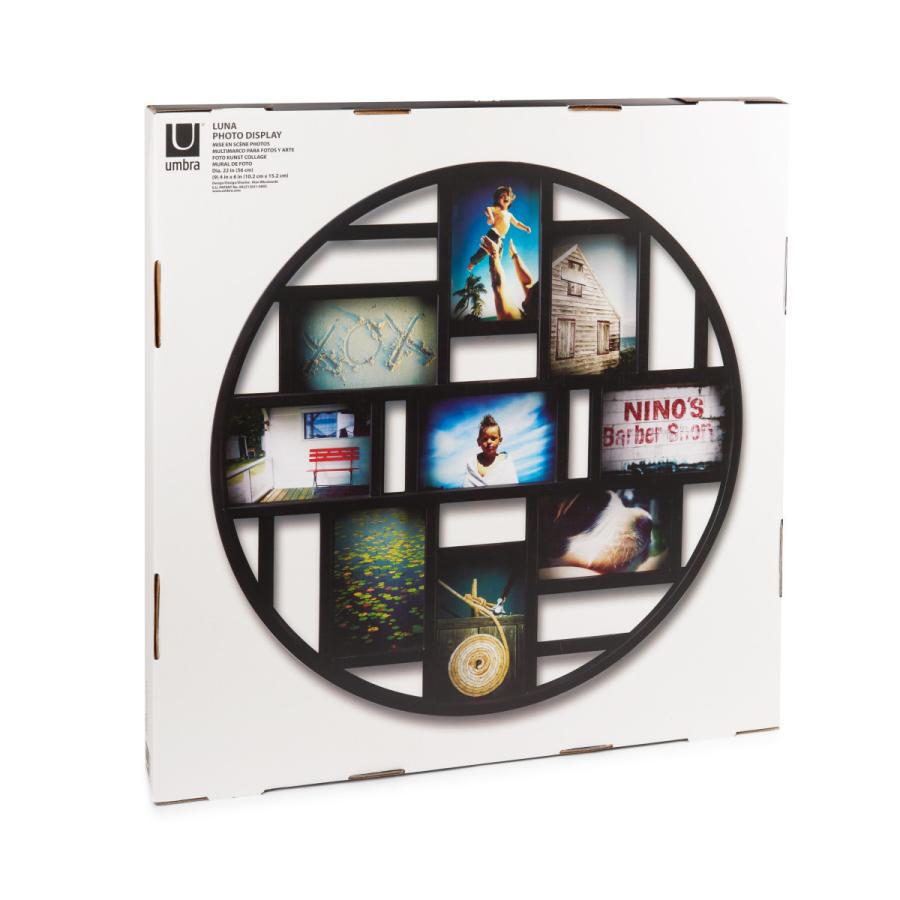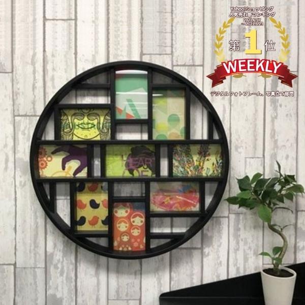 インパクトのある大きなフレームで9枚の写真を飾る事ができる。写真を入れ替えるだけで部屋の印象がグッと変わります。壁掛けタイプのフレーム。写真サイズ:KGサイズ9枚【サイズ】φ56×5.5cm【本体重量】約1.7kg【素材】ポリスチレン、ガラス【原産国】中国