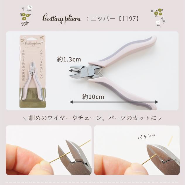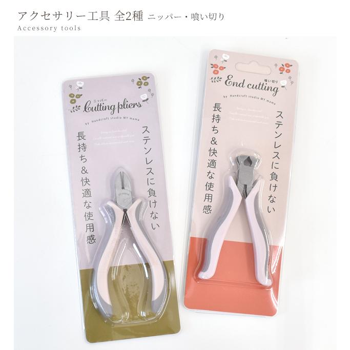 アクセサリー工具 全2種ニッパー・喰い切り#ゆうパケ8点可アクセサリー作りやワイヤークラフトなど細かな作業に最適。はじめての方にもおすすめなお品です。落ち着いたくすみ系のツートンカラーがオシャレなデザイン。疲れにくく快適な使い心地で、作品作りをサポートしてくれます。ステンレスよりも硬い素材使用だから、切れ味が良く すり減りにくい!長く使えて経済的なのも嬉しいポイント。ビーズやパール…どんなパーツでアクセサリーを作ろうか、考えるだけでもわくわくします。