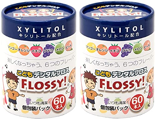 【★エントリー&店内3点購入でP10倍(8/4 20:00-8/11 1:59迄)】こども専用フロス FLOSSY!(フロッシー) 1箱(個包装/60本入) こどもデンタル フロス 子供 子供用 キシリトール 配合 キッズ フロッシー こどもフロス 味付き 個包装