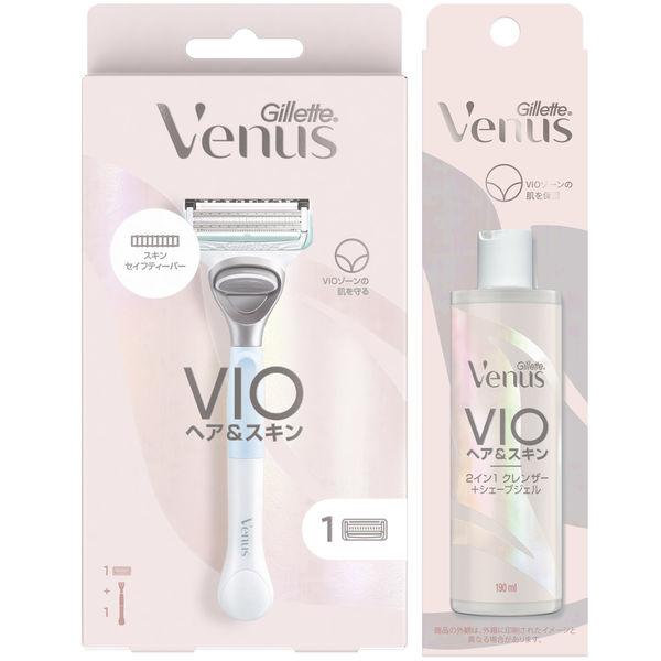 ジレット ヴィーナス VIO ヘア&スキンカミソリ 本体 (ハンドル+ 替刃 1コ) + 2イン1 クレンザー+シェーブジェル 190mL