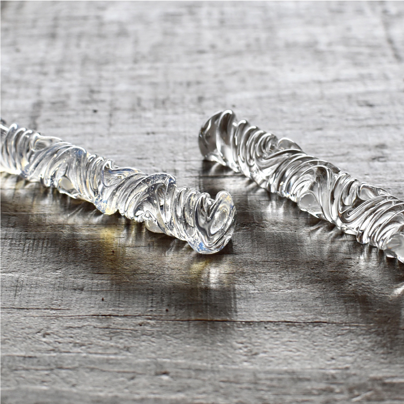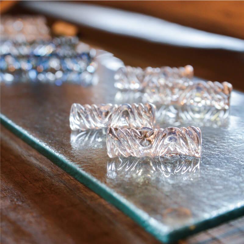 琵琶湖の源水となる伊吹山から流れる清らかな水を表現した、清々しく軽やかな美しさを放つガラスのカトラリーレストです。