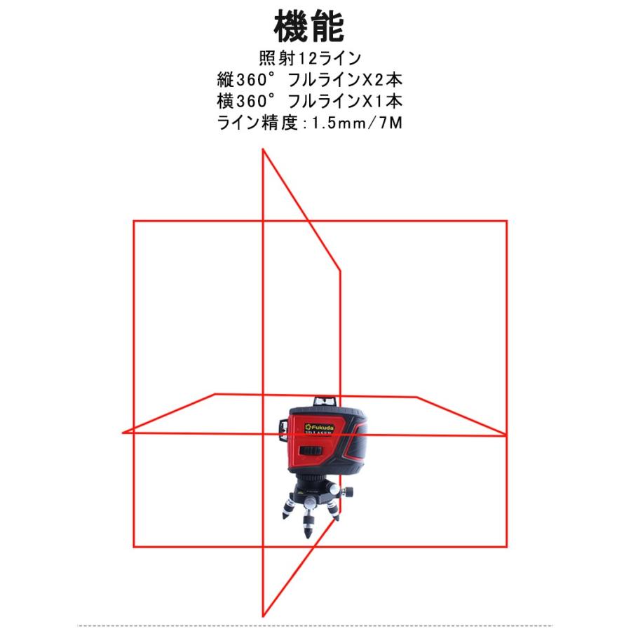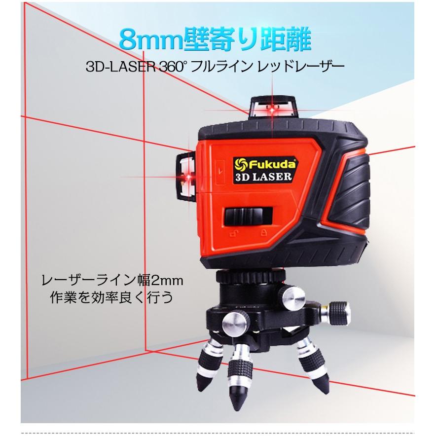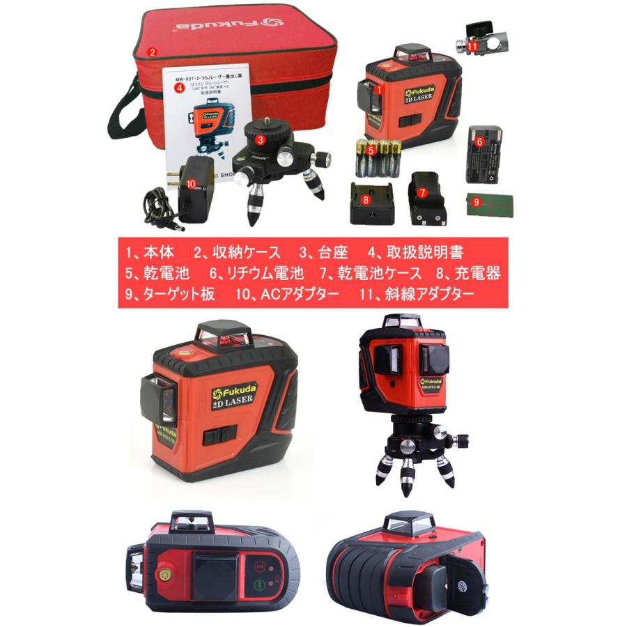 FUKUDA 360° フルラインレーザー墨出し器 単三乾電池+リチウムバッテリー レーザーレベル