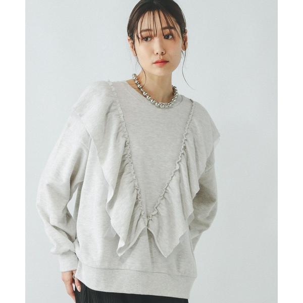 キーワード:トレーナー スウェット レディース フリル 長袖 無地 ガーリー キレイめ デート ベーシック 夏 公園 春 旅行