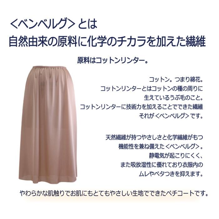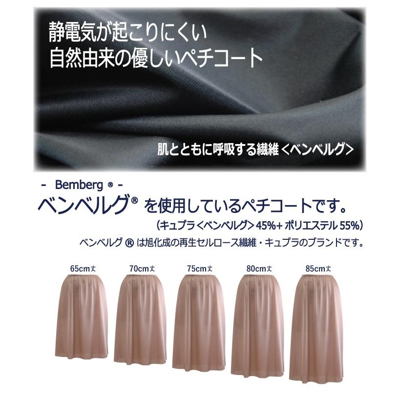 天然繊維が持つやさしさと化学繊維がもつ機能性、両方のよいところを兼ね備えた旭化成の<ベンベルグ>ペチコートをぜひお試し下さい。