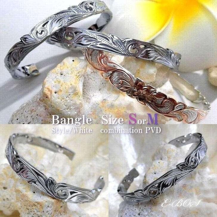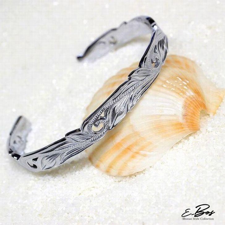 ハワイアンジュエリー バングル ブレスレット ヘリテイジ 透かし 彫り スクロール サージカルステンレス E-BOS