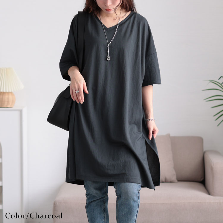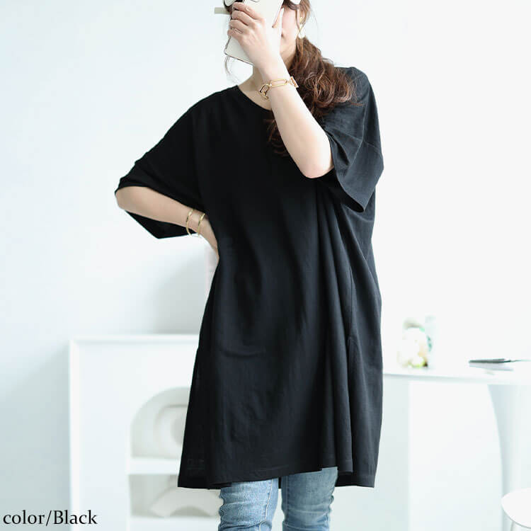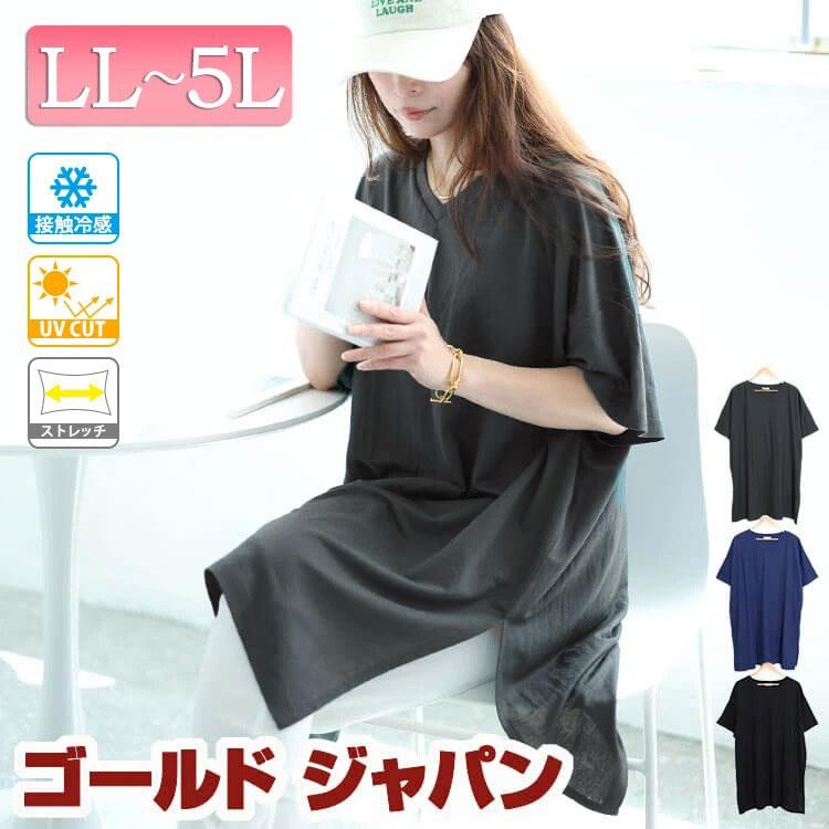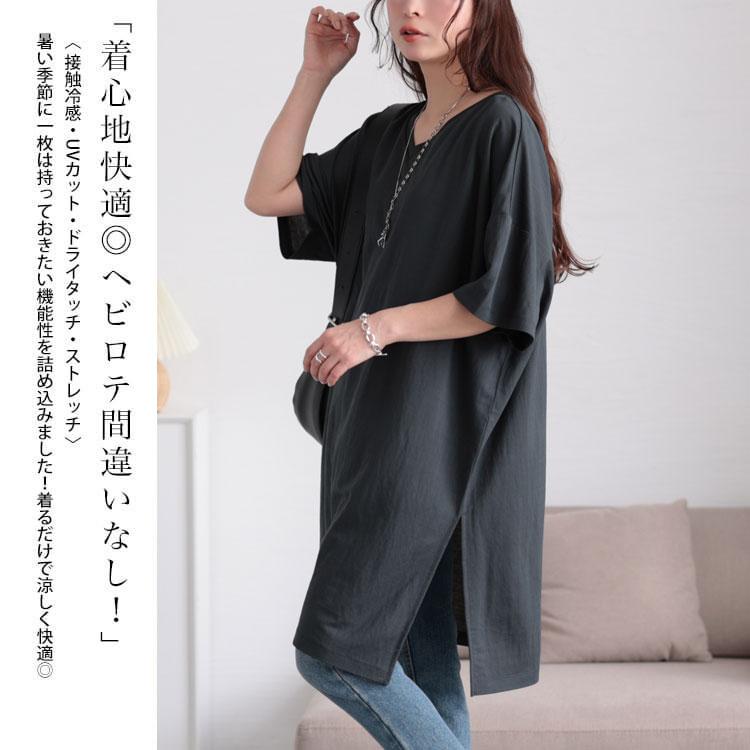 大きいサイズレディース チュニック 接触冷感&UVカット&吸湿速乾サイドスリットチュニック ロング ドルマン Vネック 5分袖 接触冷感 UVカット UV 吸湿速乾 ストレッチ 伸縮 スリット 夏新作 夏服 秋服 春服 LL 2L 3L 4L 5L グリーン ブラック 黒 ブルー ゴールドジャパン