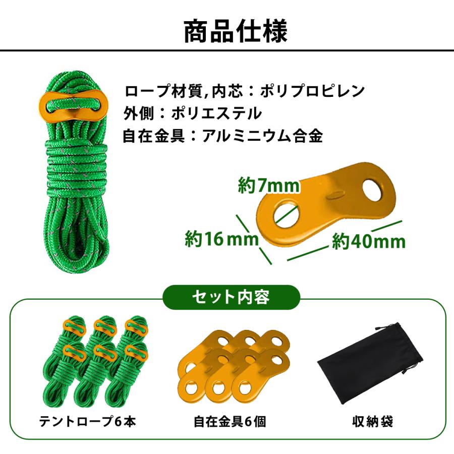 セット内容:ガイロープ×6本 自在金具×6個 収納ケース付き