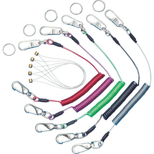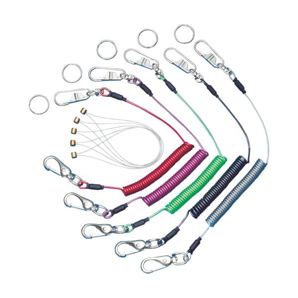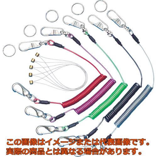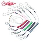 スーパーツール 安全ロープ(ステンレスワイヤー芯)ダイレクトキャッチフック付 1kg用 レッド/バイオレット/イエローグリーン/クリアブラック/クリア