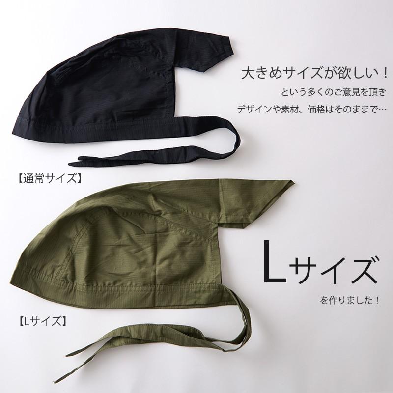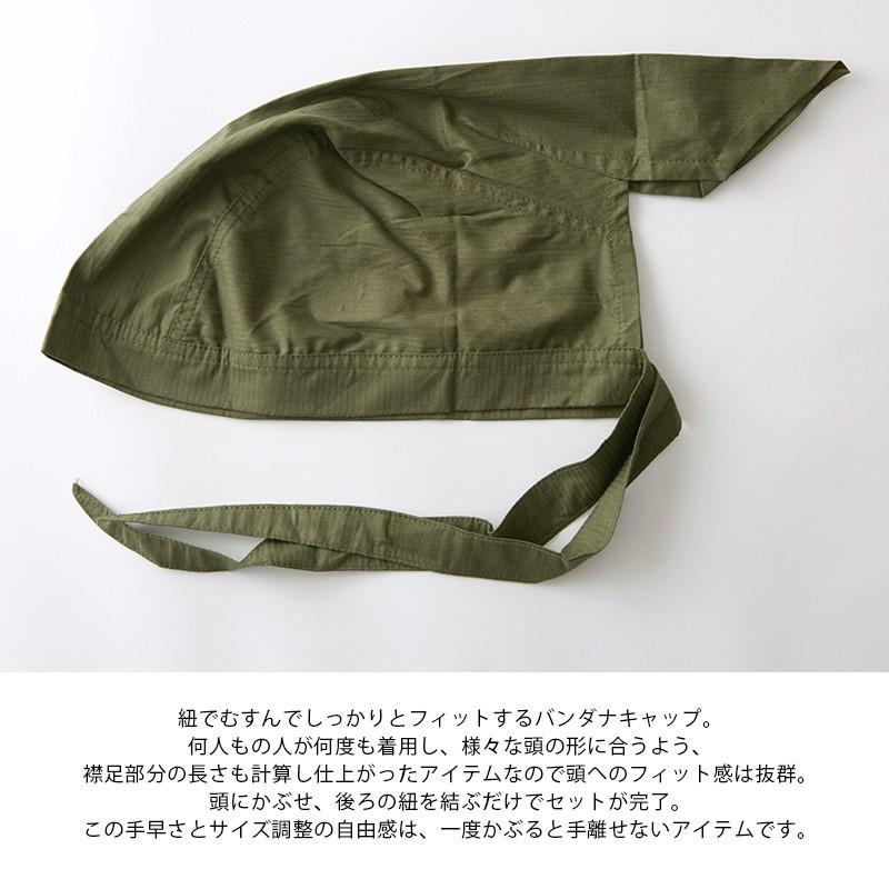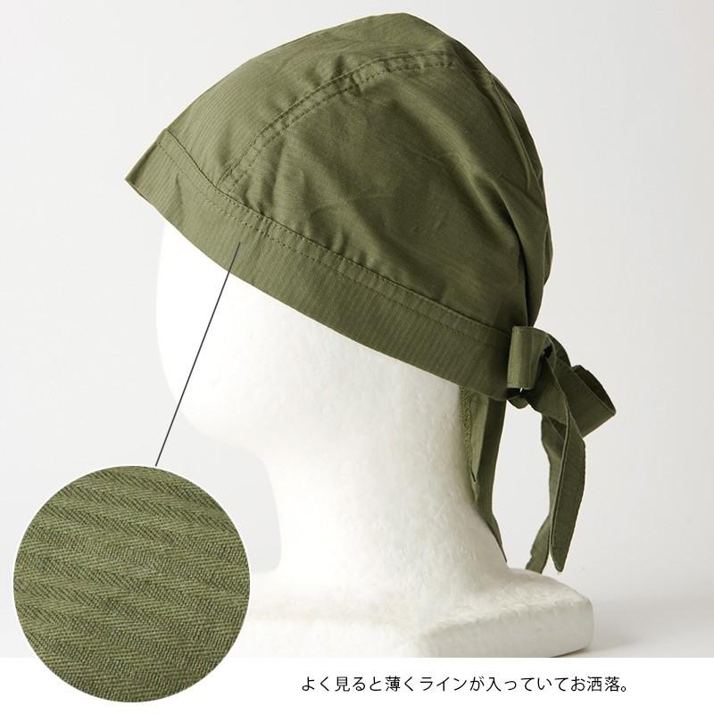 紐で結んでしっかりフィットするバンダナキャップ。