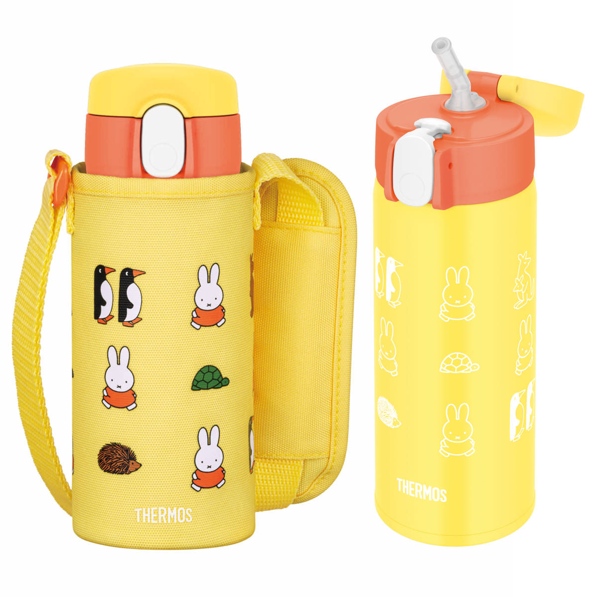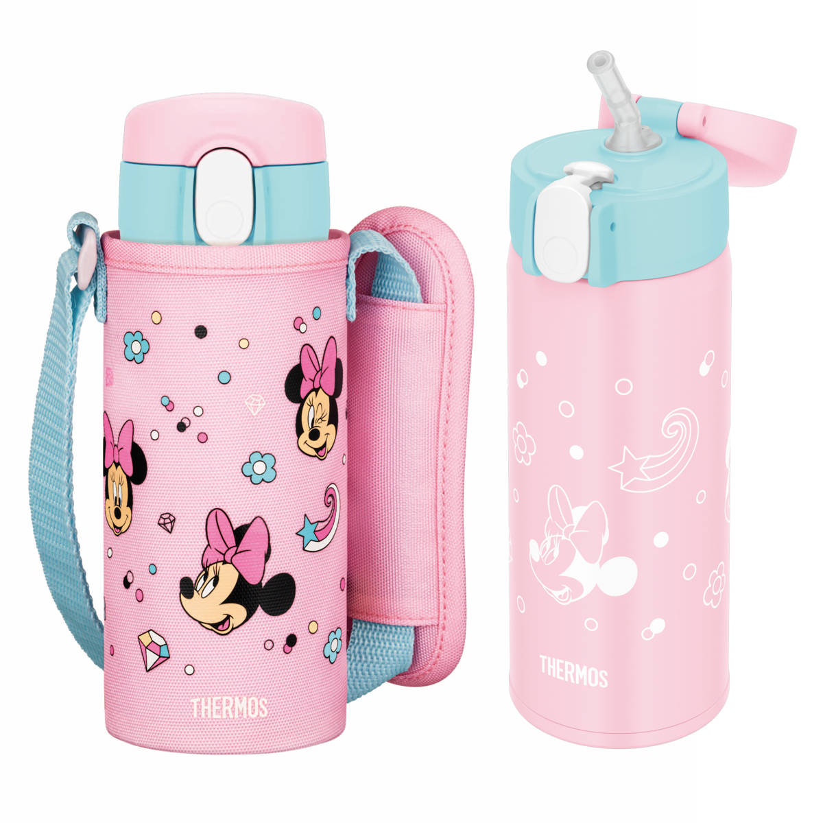 子供用水筒 ステンレスボトル ストロー ワンタッチ 幼稚園 保育園 ポーチ付き キャラ ピンク ブルー パープル グリーン イエロー 黄色 うさぎ ウサギ ディックブルーナ miffy ブルーナ Disney ディズニー ミニーマウス MinnieMouse LH18512