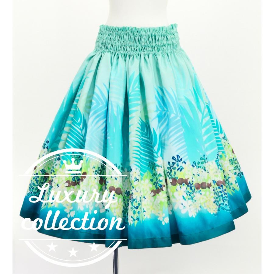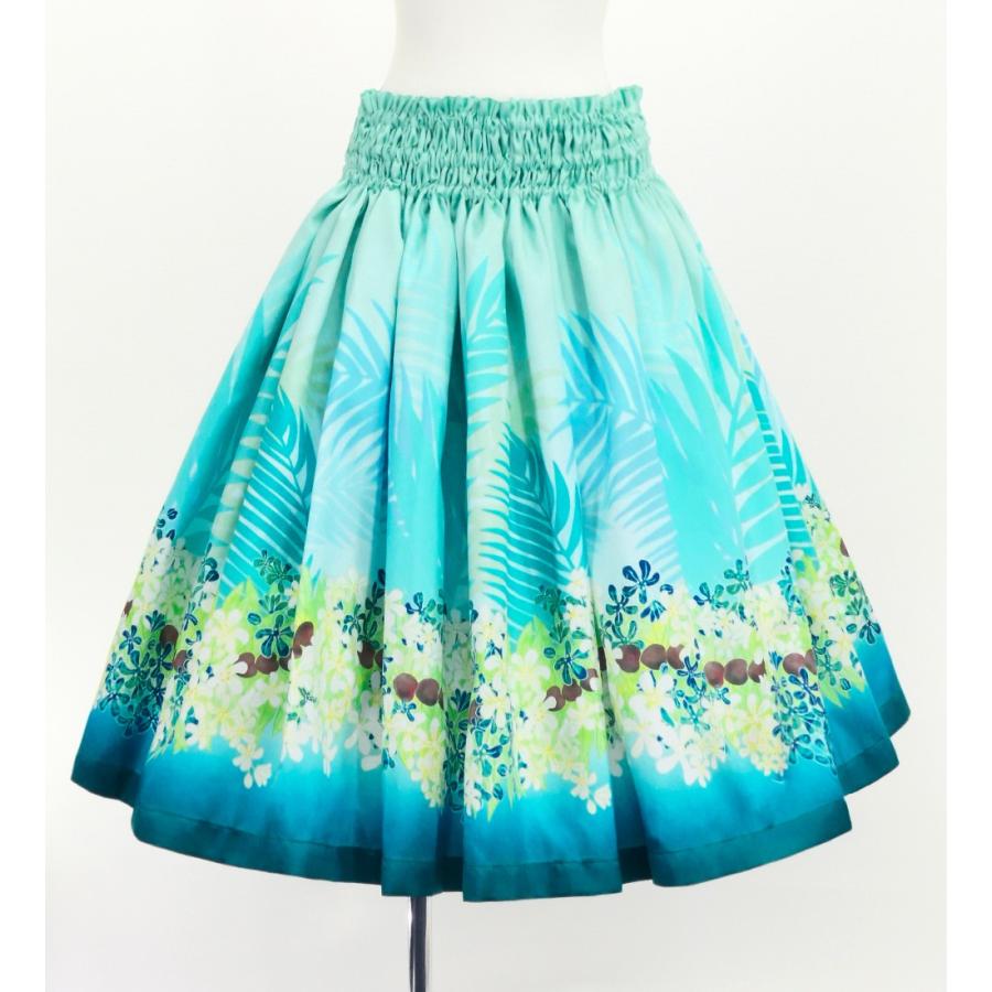 フラダンス シャンタン パウスカート シングル ククイの花&ククイナッツのレイ ライトブルー J3193lbl
