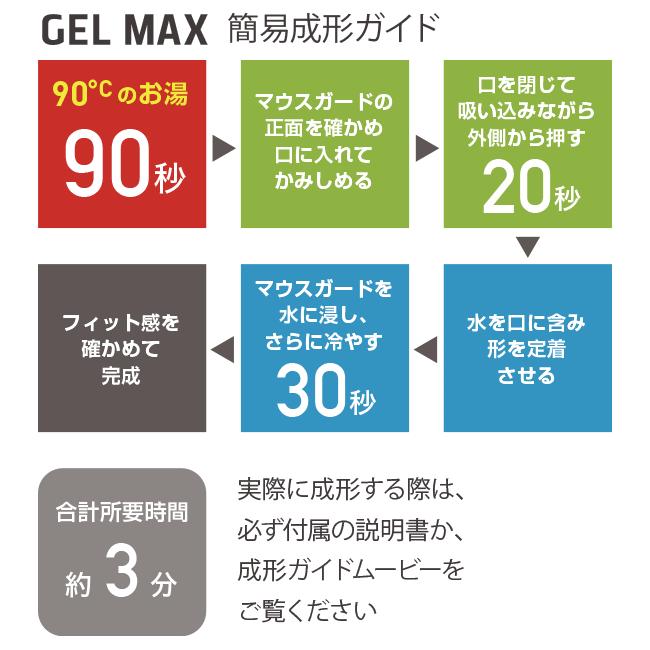 前歯の1ヶ所と奥歯の2ヶ所はジェルフィットライナーで構成し、フィット感と衝撃吸収性を向上