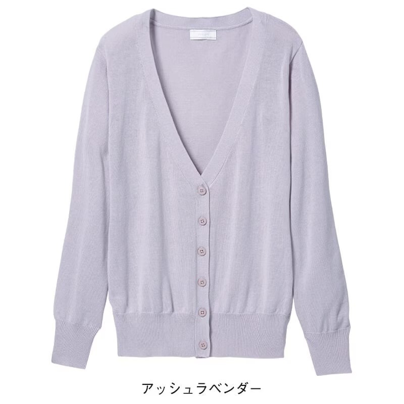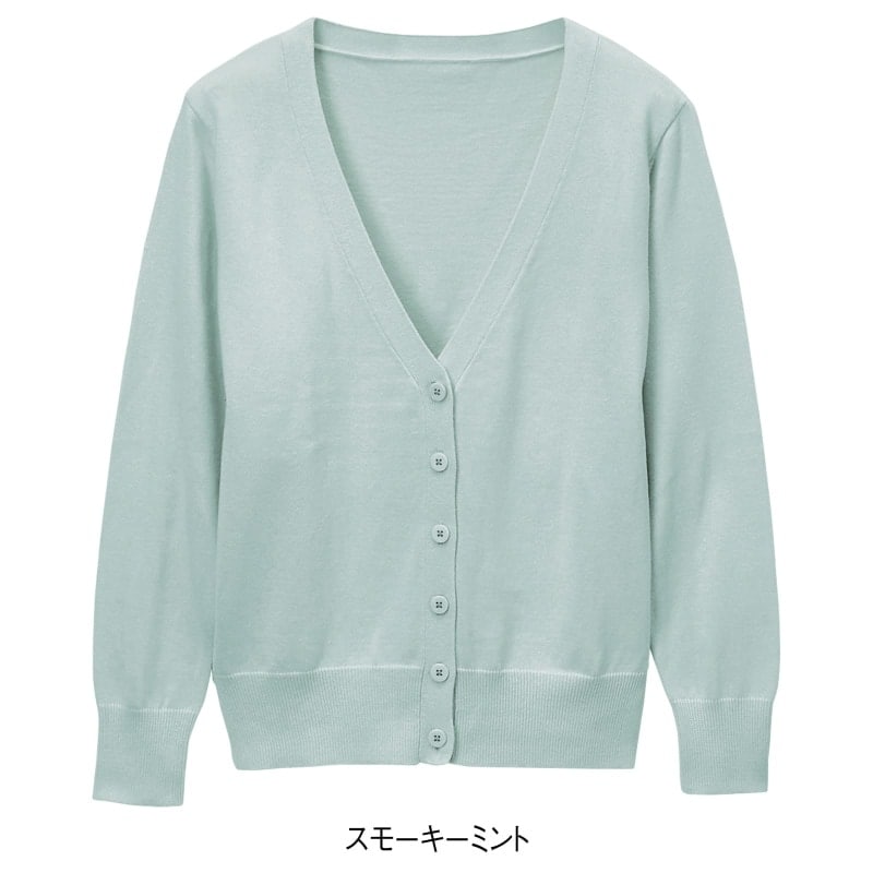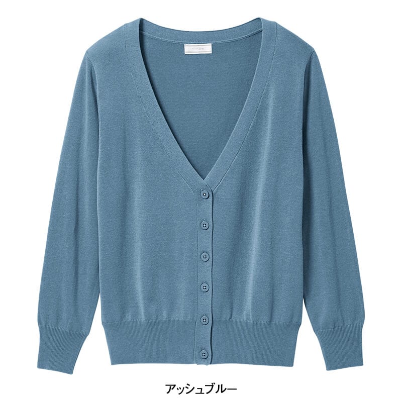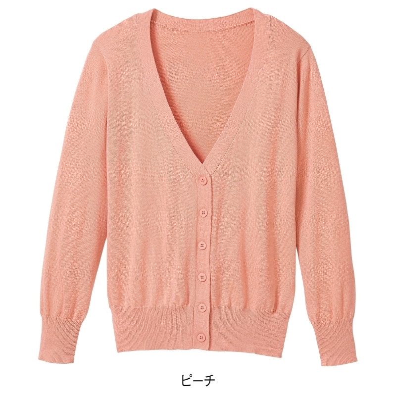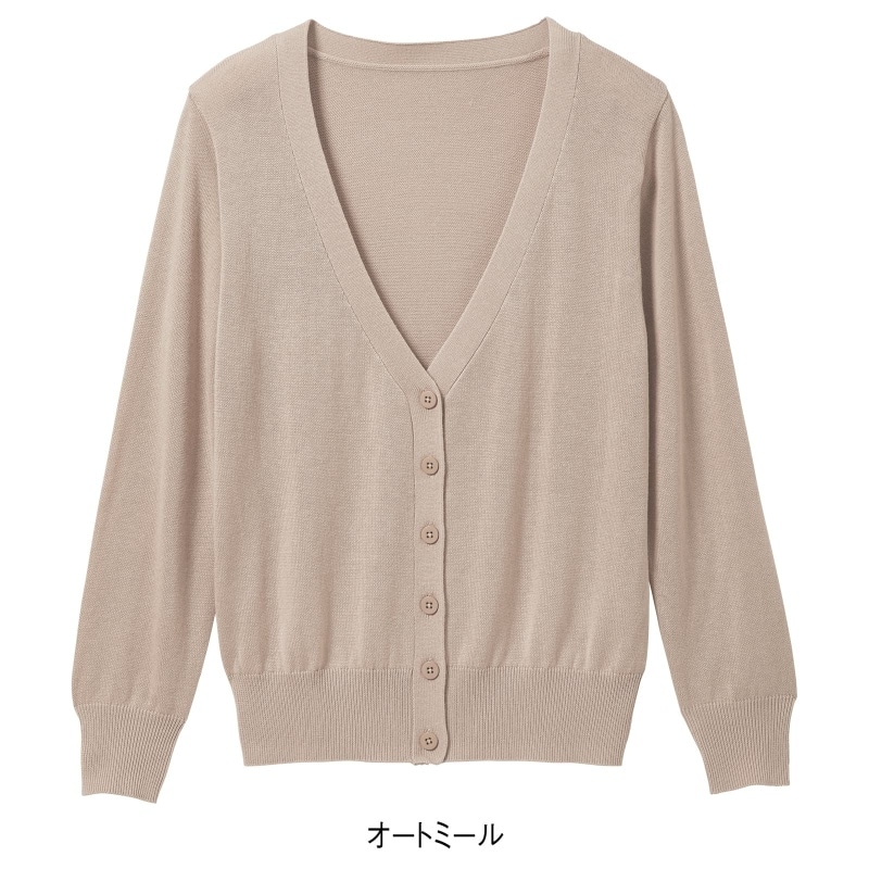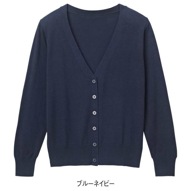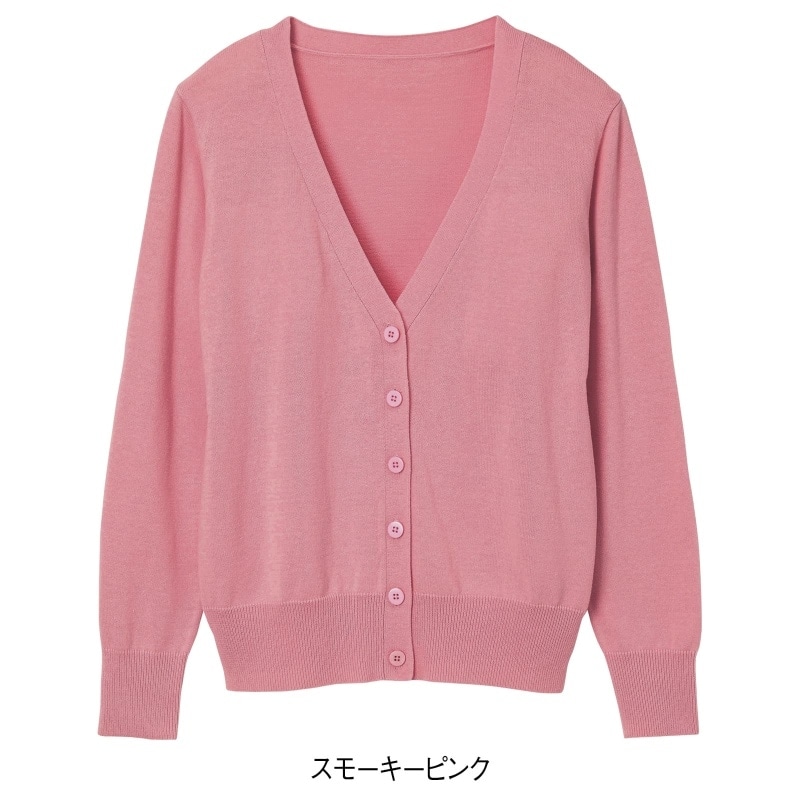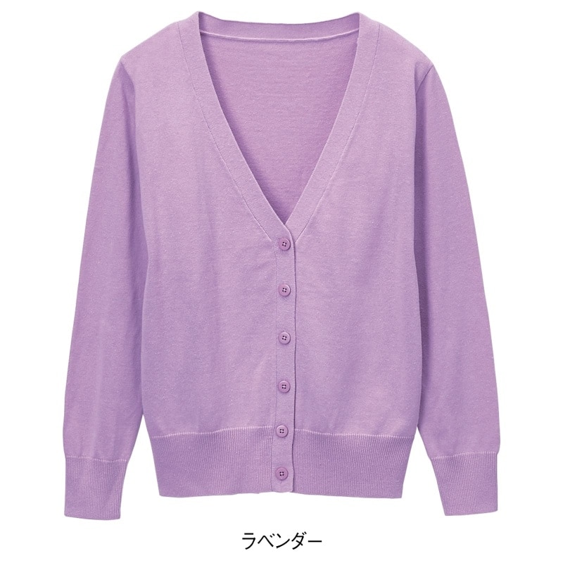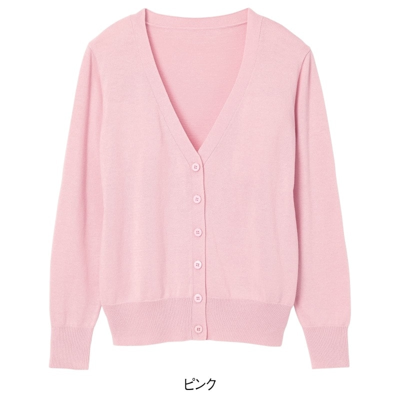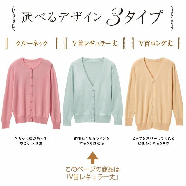 定番のレギュラー丈で豊富なサイズのなめらかV首カーディガン!