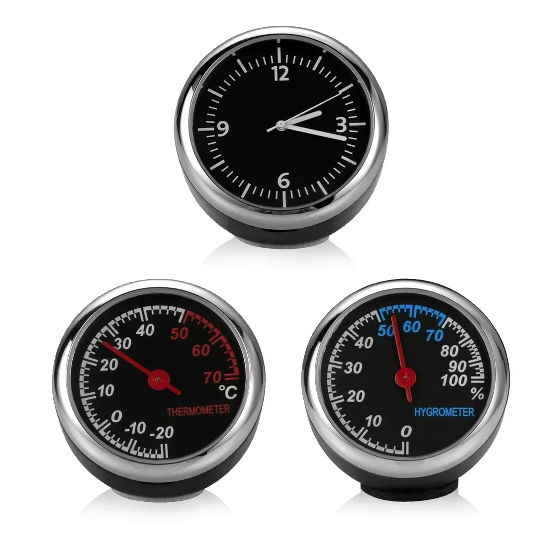 車に設置する簡易的な時計・温度計・湿度計です。時計・温度計・湿度計どちらもアナログタイプで見やすいです。バラでの販売なので1個でも組み合わせて3連にしてもおすすめです。底面に両面テープがついていますので、車内で両面テープが接着できる平らな場所に設置できます。送料無料。普通郵便(定型外)でのお届け。測定範囲:-20℃-+70℃サイズ:40×40×40mm
