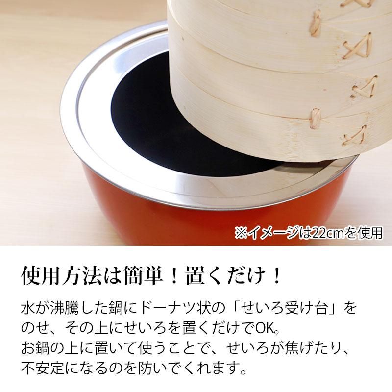 せいろと合わせて使える専用の受け台がセットになっているため、ご家庭の鍋やフライパンですぐにせいろ料理をお楽しみいただけます。