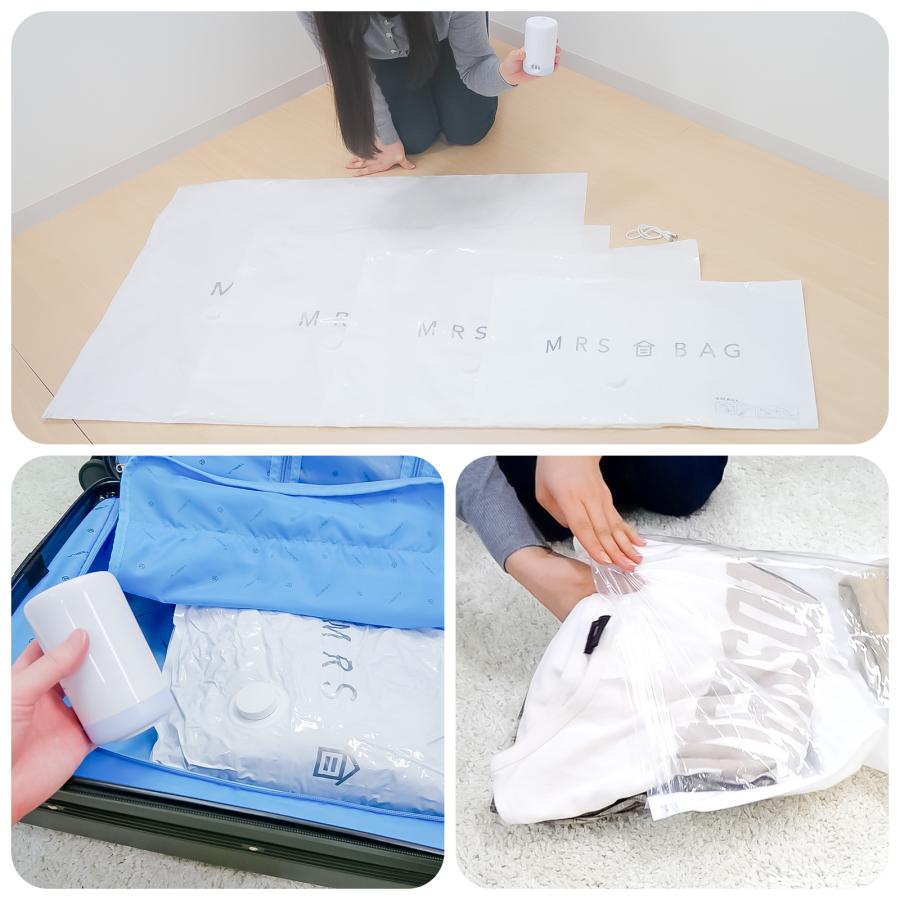 圧縮袋と電動吸引機を旅行カバンに入れて、
