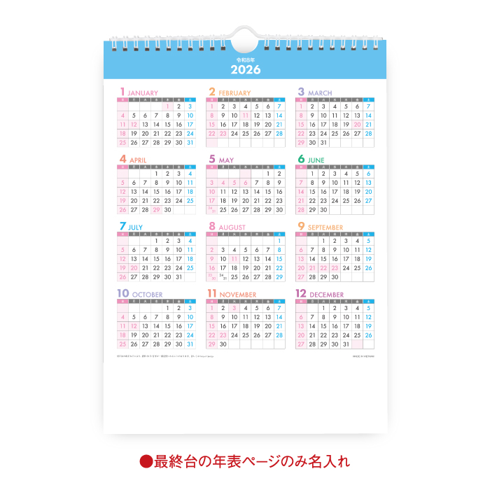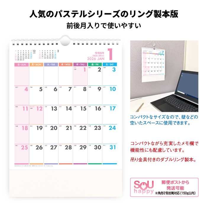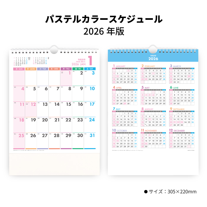 【 2026年 壁掛け パステルカラースケジュール SG610 商品詳細】