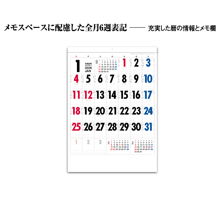 ・たっぷり書き込めるメモ欄と充実の暦情報