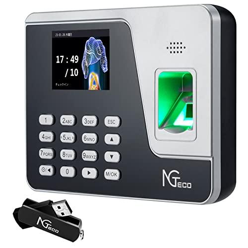 NGTeco 指紋認証 タイムレコーダー 勤怠管理 コスト削減 タイムカードーレコーダー 高機能自動集計 USBメモリが付き, カードラック、タイムカードは