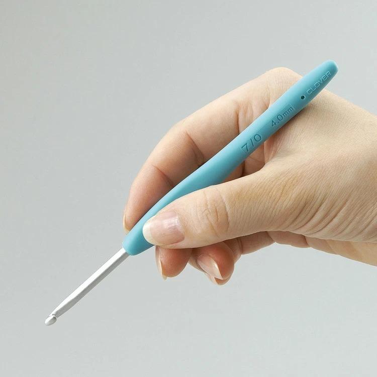 しっかり編める針先と、やさしい手ざわりで指にフィットする立体グリップ付きで初心者さんにも安心です。