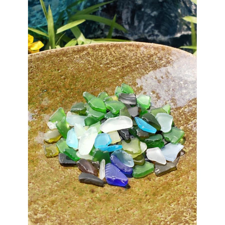 人工ですが、海の中で砂、微粉、石、砂利と一緒に波に揉まれたようなガラスを、