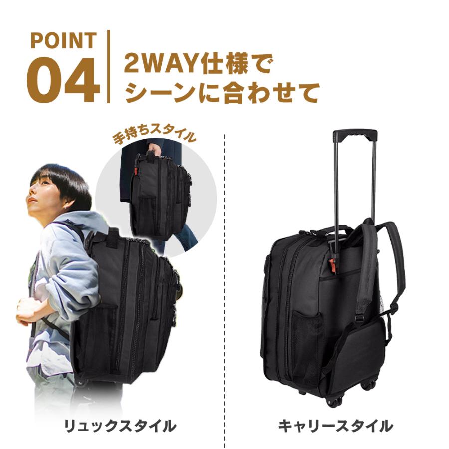 ●『引く』『持つ』『背負う』と3通りの使い方ができるので、シーンに合わせてお使いいただけるリュック式キャリーバッグ