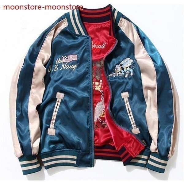 只今底値!スカジャン 男女兼用 横須賀 メンズ刺繍 ブルゾン 鶴 サテン 光沢 リバーシブル 二面 両面 フライトジャケット レディース アウター 春秋 長袖