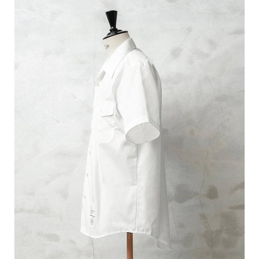本来は制服などの下に着用したり、夏にはこれ一枚で勤務するためのシャツだったので、素材には通気性・吸湿性の良いポリコットンを採用。マットでシャリ感のある肌触りは涼しげな印象を与え、また丈夫でシワになりにくいのでぜひ暑い季節のワードローブにおすすめの一枚です。