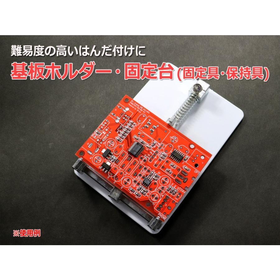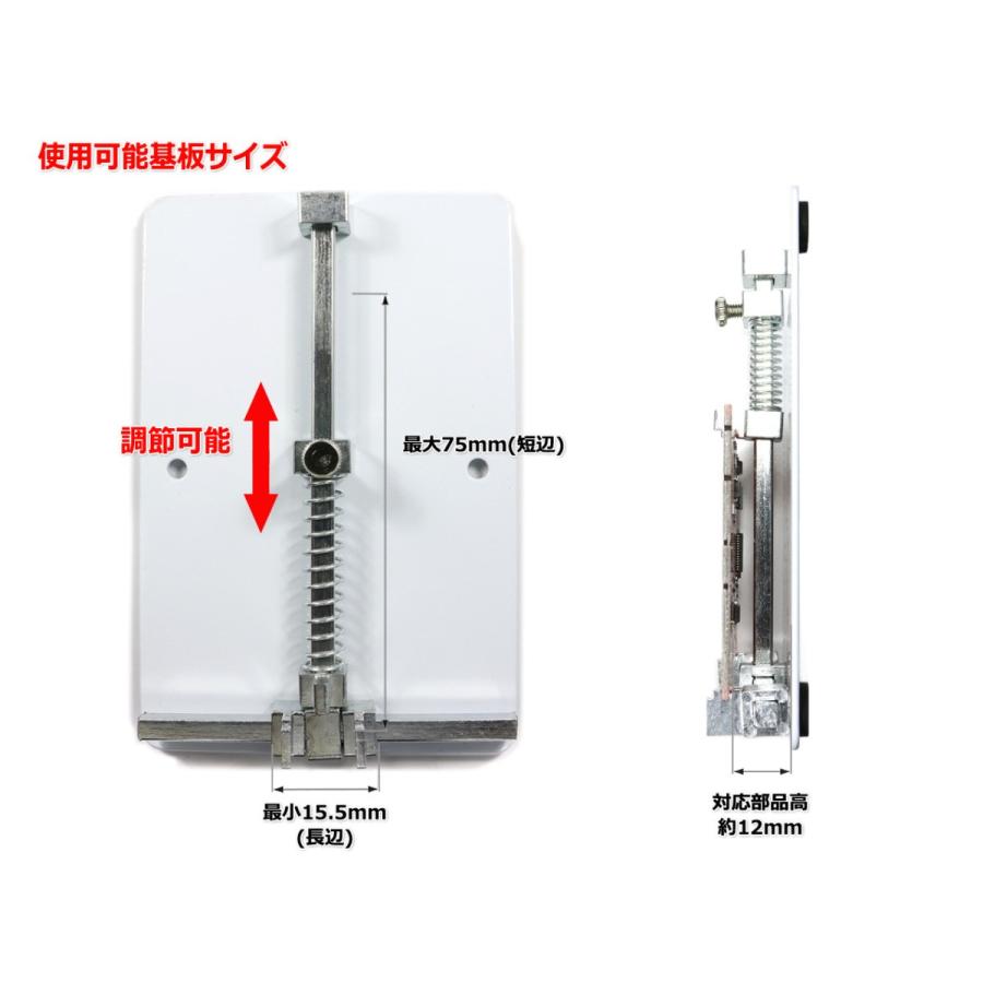 最大短辺75mm以下、最小長辺15.5mm以上の基板を固定できる、便利な基板ホルダーです。