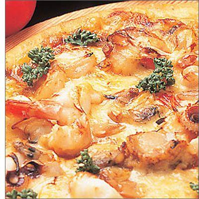 <シーフードデラックス>★シーフードピザの王様!!シーフードスペシャルで、満足できない方は、こちらをおすすめします。このボリュームに大満足、請け合いです!!具材:ほたて貝、エビ、イカ下足、ツナ、マッシュルーム、アサリ、イカ、オニオン、ガーリックサイズ:おうちで焼きやすい20cm