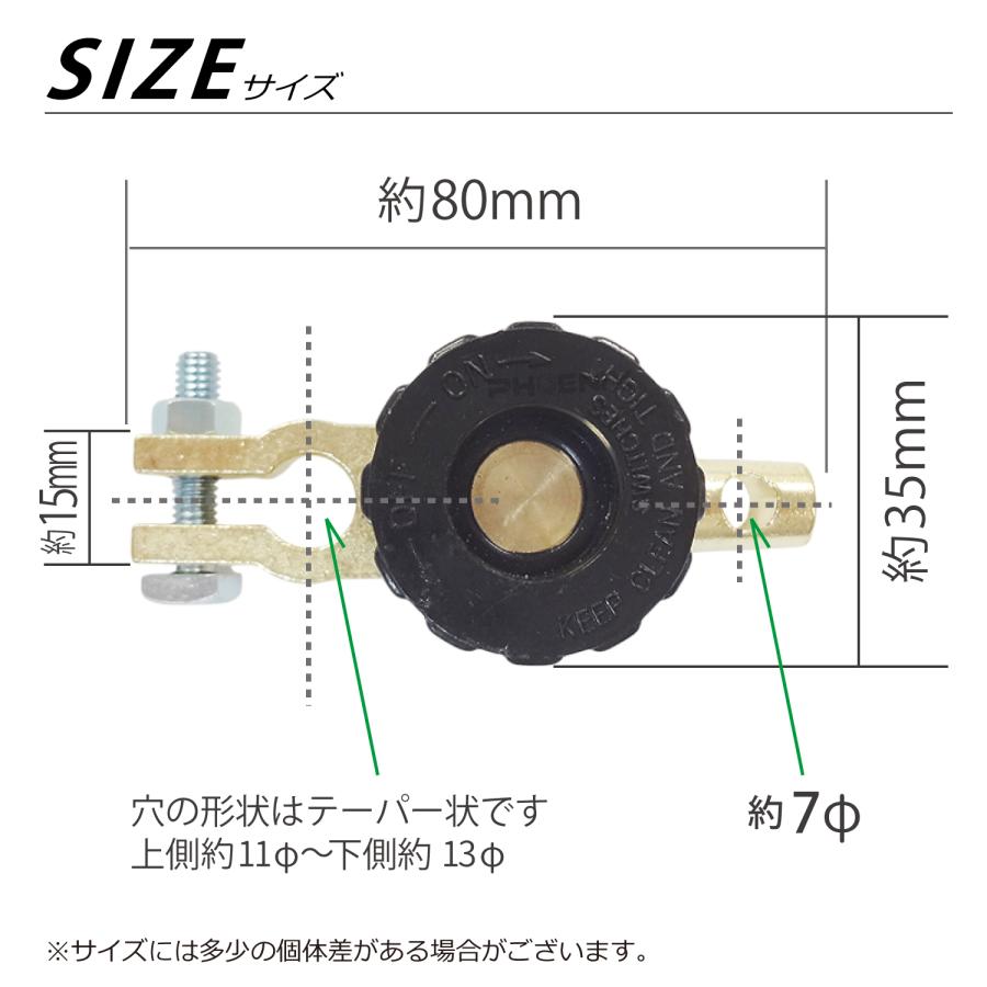 バッテリー端子と車体側の電源配線の間にダイヤルを設け、それを回すだけでON/OFFできる構造になっており、工具や手間は一切必要なくなります。