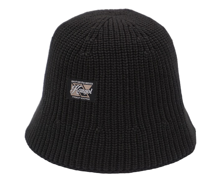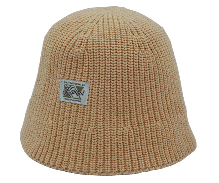 ニットバケットハット ヘビーウォッシュ加工されたコットンブレンド糸を使用したクロッシェ型のニットバケットハット。