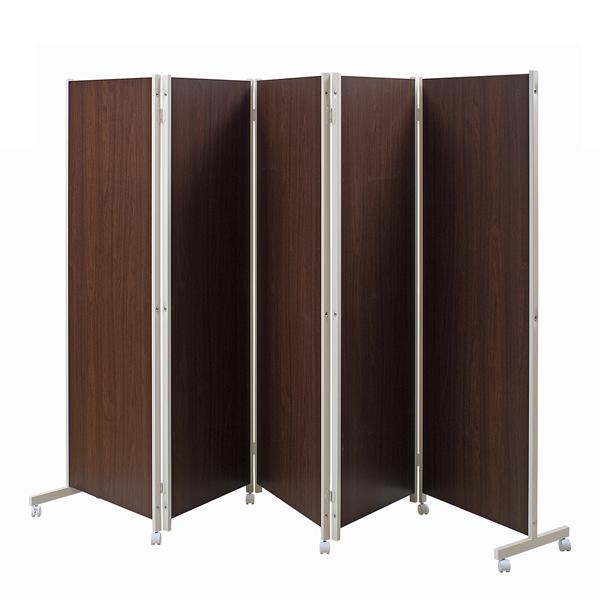キャスター付きパーテーション5連 高さ180cm(ダークブラウン)