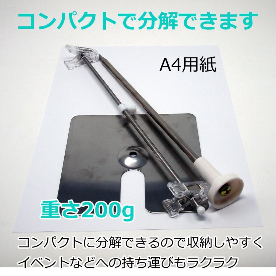 ポールが28-93cm伸縮するので最大A1サイズ(594×841mm)のポスターも展示可能です。