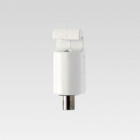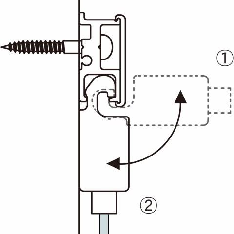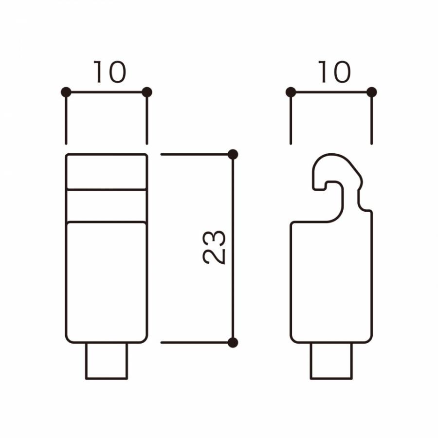 材質:亜鉛ダイカスト仕上げ:塗装(ホワイト)● この製品にはワイヤー抜け機構はありません。レールへの脱着はワンタッチで行えます。・レールの溝に引っかけ、押し下げるだけでレールに取り付けられます。・Φ1.0〜1.2mm(8〜10kg)までのワイヤーを差し込むだけで固定します。