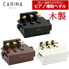 | 特長 | 踏み台の高さは14〜20cmの間で無段階調節可能。 4〜13歳のお子様にご使用いただけます。 両サイドのハンドルを回すだけで、お子様の身長に合わせて自由に調節できます。 3本ペダルタイプの補助台なので、アップライトピアノ、グランドピアノ及び電子ピアノにも使用できます。 二つまたは三つのペダル付きのピアノに対応しております。 グランドピアノやアップライトピアノに設置しても馴染みやすいシンプルなデザイン。 組立不要、日本語説明書を付属しておりますので、取り付けはとても簡単です。 ボディは木製でペダルは鉄フレームで作られており、重みがあって、耐久性に優れています。 底部には滑り止めゴムが付いているので演奏中の安定性をしっかり保ちます。 ペダルは反発性スプリングを採用し、小さなお子さまでもぺダリングしやすくて長持ちします。 また、ピアノ本体に傷がつかないように、接触部分には厚み2mmのスポンジクッションが付いています。 | |||||