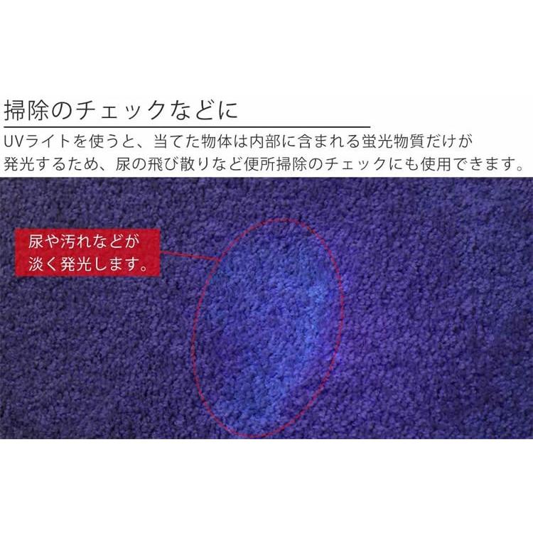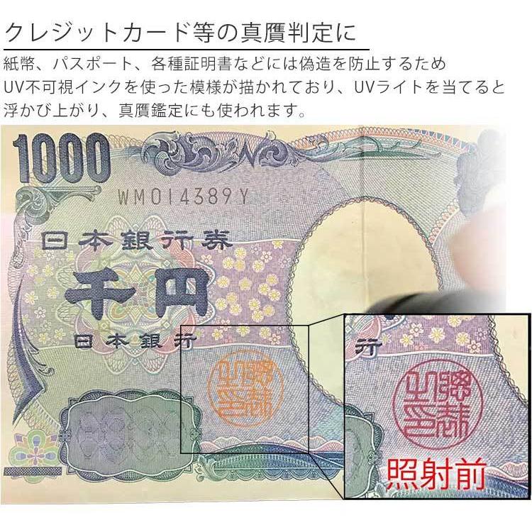 ※当商品の光線に含まれる主な光は可視光線ではない(人の目には見えない)ため蛍光物質を含まない物体に照射した場合の光は暗く見える場合がございます。