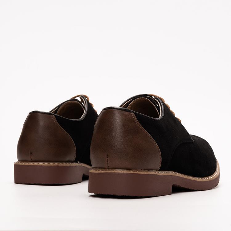 オールシーズン使えるオックスフォードシューズ。ヒール部分のスエード切り替え、ライニングのストライプがポイント。